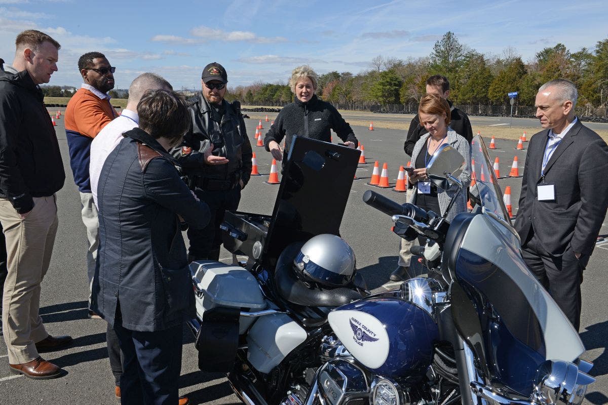 The one-day visit to Fairfax County, set up by the D.C.-based Police Executive Research Forum, was filled with events. Police Scotland officials started the day at the police department’s driver training range where the FCPD set up a SWAT hostage rescue vehicle, a K-9 patrol and bloodhounds, and an explosives ordinance disposal bomb bus.