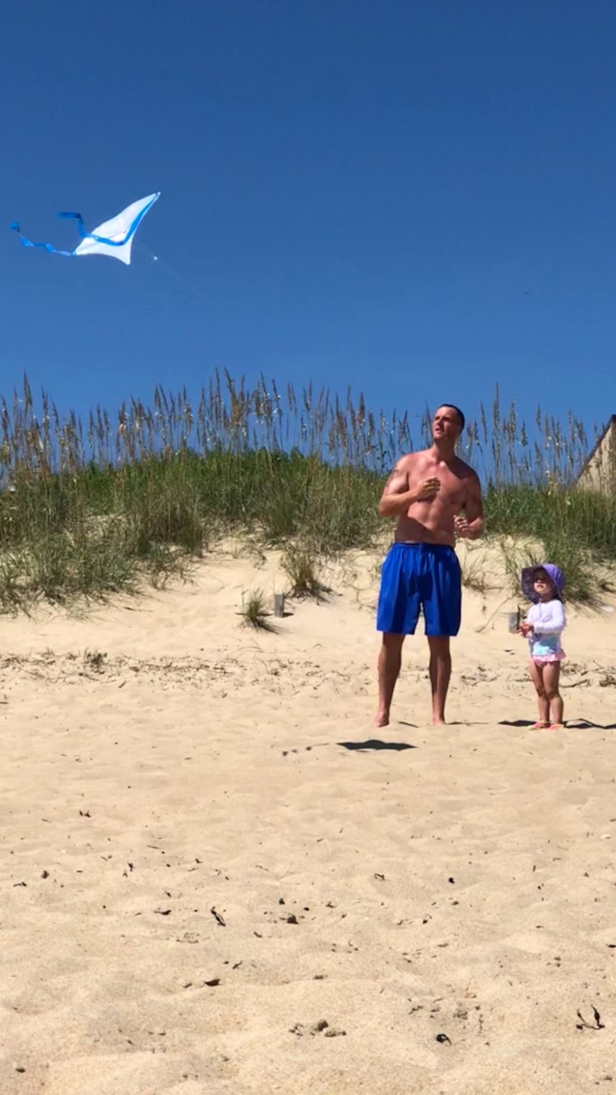 Billy and Maddie Wood in Outer Banks, North Carolina this August. "Last year she didn’t want to step foot in the sand. This year she couldn’t get enough of it," writes Billy Wood. Image courtesy Billy Wood
