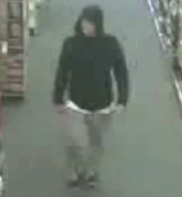 The suspect was described as white, 20-29, with pale skin with acne, and wearing a black hooded sweatshirt.