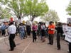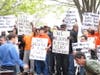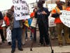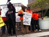 Members of area unions and construction workers came to the press conference to express their disagreement with Wolf. They shouted that they should be able to get fair wages and health care benefits and chanted, “Hey hey, ho ho, corporate greed has got to go.”