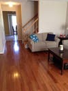 The room is a master bedroom with 2 Closet Maid closets and a private bathroom with heated tile floors. Newer beautiful hardwood floors throughout. Access to all three levels includes entirely remodeled and fully equipped kitchen with granite counter tops and stainless steel appliances, fully furnished living room, washer/dryer, beautiful deck, pool, and a permit parking space. Rent is $800/month plus utilities (electric and water split 3 ways each month). Cable tv and wifi internet (Verizon Fios) are included in the rent price. The bedroom can be available fully furnished for an additional $50/month.