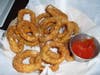 Appetizers at Bon Chon range from folded pork buns (not the whole, steamed type), calamari, seasoned fries, onion rings, zucchini fries, mandoo (Korean dumplings) or french fries. We opted for the calamari, because I had heard they were good here. I guess I heard wrong. These were quite large breaded calamari that resembled processed onion rings because of their uniformity. The heavy breading was sprinkled with parmesan cheese and served with ketchup. The Italian spices made me feel like I was in an Italian restaurant, and pairing them with ketchup made for an odd combination. They tasted frozen and I wished we hadn’t ordered them.