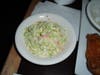 Ordering the main event, the chicken, took a little menu deciphering and more than a couple of questions of the waitress. Basically, you can order wings or drumsticks or a mix of wings and drumsticks, (not to be confused with wing drumettes.) Or, you can order white meat. The white meat chicken is thickly sliced and batter fried boneless breast meat. Choose from a small, medium, or large order (see the menu for exact counts) and then you must choose soy garlic or hot soy garlic. We ordered a little bit of everything plus coleslaw and rice on the side.