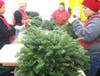 Teams of farm workers have been busy making hundreds of the fresh, pine bough wreaths by hand. Garant special-ordered boxes of the fresh branches, which are taken from the lower limbs of the Christmas trees. The limbs are hand sorted for size and beauty and twisted onto a metal wring that forms the solid backing for the wreath, Garant said.