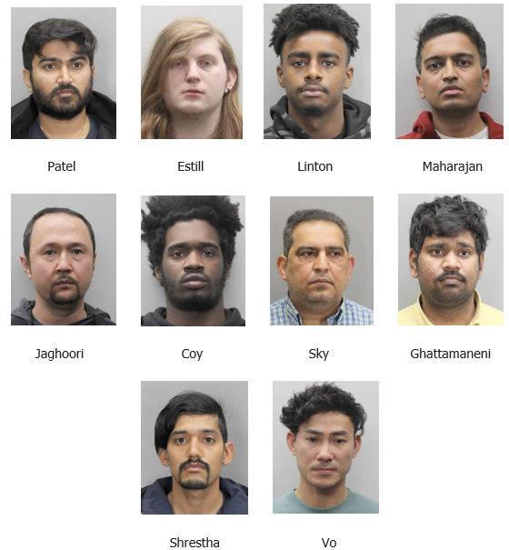 FAIRFAX, VA — Fairfax County Police Department filed 19 felony charges against 10 men ranging in age from 18 to 51 from Northern Virginia and Maryland over the last two weeks, according to a police blog post.