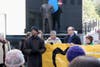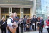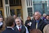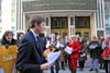 Three couples applied for the marriage license in a symbolic ceremony in front of the courthouse. Paul Ferguson, clerk of the county court, had to deny the applications but said he would keep them on file.