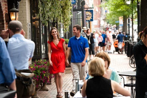 PHOTO: The heart of Old Town, King Street offers embellished storefronts, red brick sidewalks, a constant flow of pedestrians (and their pets), outdoor seating and the King Street Trolley. Photo by Colton Photography courtesy of Visit Alexandria