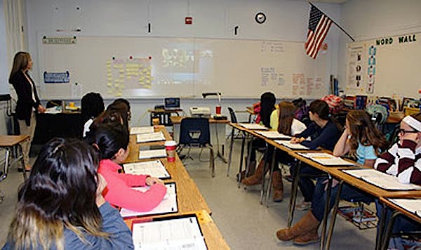 Seventh-grade girls came into school before dawn at George Washington Middle School Thursday to chat with students in Kabul.