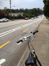 Other cities are realizing that separate bike facilities are the way to go. In Atlanta the Beltlineproject will combine a bike path with capacity for the future addition of light rail. As the name implies, it will loop around downtown Atlanta and connect the nearby revitalized neighborhoods. Because it runs along an abandoned railroad, some of the street crossings will be at separated grades (via bridges). In essence, it will be an expressway for bikes. That may help promote the use of their existing bike lanes, but only if Atlanta ramps up enforcement. At least one local blog posts pictures of violators’ cars to shame the city government into doing just that.Who do you call when it's a police car blocking the bike lane?