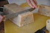After the loofah have grown (they look a lot like cucumbers), you simply remove from the vine, peel off the green exterior and let them dry out. Mellenie thickly sliced the loofah with a regular kitchen knife it—is a fruit after all.