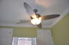 As for the new elements, Michelle replaced the old white appliances and the oven vent with all new stainless steel. The chrome color also makes an appearance with the new ceiling fan that has a cool retro vibe. The crown molding, the contractor’s suggestion, really finishes off the room.