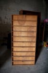 - CD shelf: Whoever purchases this will also get a piece of Alexandria history—it’s a CD shelf from the old Olsson’s Books and Records store in Old Town. One of our fellow volunteers used to work at Olsson’s and acquired it when they went out of business. Its narrow shelves are great for CDs, DVDs, paperbacks and kids’ board boards. And if you have a spot in your basement, use it to store canned goods, spice jars or other dried kitchen staples. Look closely and you’ll see the metal label brackets still intact.