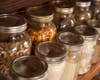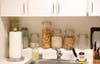 4. When there’s no room in your kitchen to store commonly used dried goods, turn clear glass containers and mason jars into decorative pieces on a shelf or in an open cabinet. No need to go hunting through a pantry to see if you need more pasta; it’s always there in plain view.