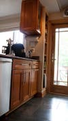 - They had to return the cabinets because some of the doors were warped. They also changed their minds about using glass on the doors.