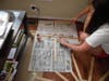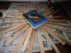 I began attaching the shims in a clock pattern so they would be even and filled in the gaps. While I waited for my work to dry, I wanted to make sure the mirror part was attaching to the shims, so I searched the house for the heaviest book I could find. The winner was my tax textbook from graduate school. I remembered it being a lot heavier though when I was in school, so I put a weight on it just in case.