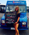 PHOTOS: Meghan Baroody with her food truck; photo is a screen grab from Kickstarter video; logo and “Meggrolls.” Photos courtesy of Meghan Baroody