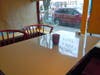 The dining room floor has been completely retiled and the tables and chairs have been replaced. Instead of the former red tabletops, new chrome-based white tables fill the space with red chairs to create a diner-like vibe.