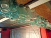A new black leather bar top sits below a collection of illuminated mason jars hanging from the ceiling. The team from Hailey Design scoured craigslist to find the jars. The firm also designed NRG’s Vermillion and Tallula.