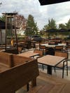 Just beyond the dining area is the exterior plaza referred to as ”The Garden.” Inspired by the Yates family tradition of maintaining a bountiful garden in their backyard, this area is bounded by a richly landscaped border with lush flowers and low brick wall providing an urban oasis. The Garden seats 68, with a fire pit at the center to extend the season for outdoor dining well into colder times of the year.