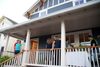 I stopped by his art opening last Friday and couldn't believe my eyes. In the front foyer, he stenciled his name and the name of the show. You can see it as you approach his handsome two-story farmhouse, where he and his wife Mytrang turned their front porch into a reception area, complete with a bartender tending a well-stocked open bar.