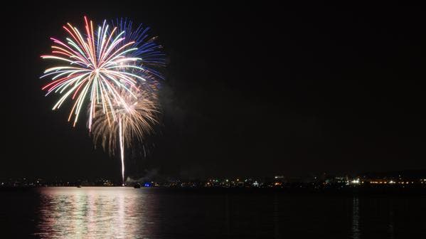 PHOTO of fireworks Saturday evening over the Potomac River in City of Alexandria by J Sonder via Twitter @jdsonder