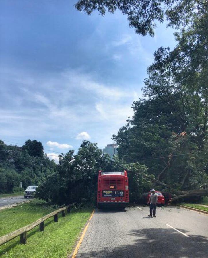 ALEXANDRIA, VA—A tree fell onto a car and Metrobus in Alexandria Tuesday, police say. There were no injuries.