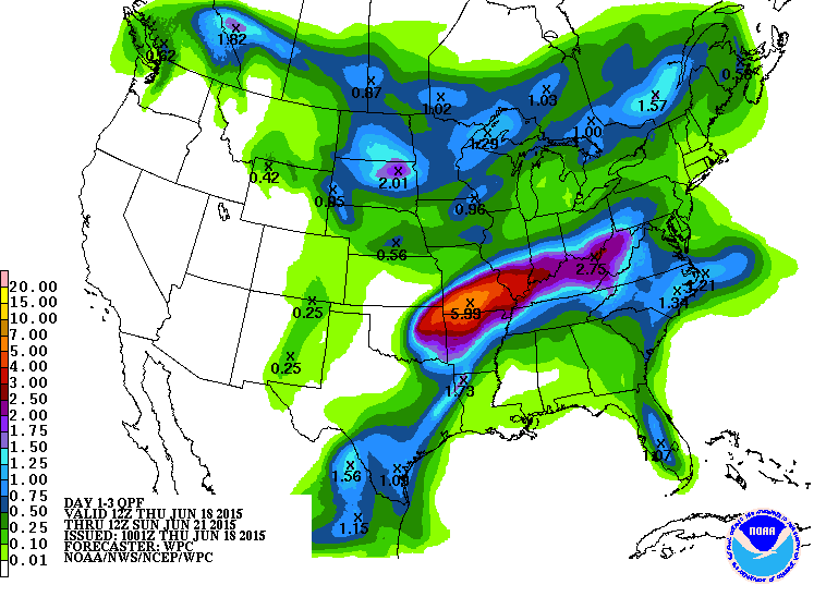 Showers and thunderstorms may contain heavy rainfall late Saturday into Sunday as the remnants of Tropical Depression Bill pass through the area, according to the weather service.