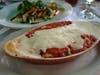 We split a large serving of the mussels in red sauce for an appetizer. The mussels were slathered in a thick marinara sauce, and with slices of bread served at the beginning, we sopped up all of the extra sauce. Though the Caesar salad did not have the distinctive vinegar ‘bite’ of a great dressing, the opening act more than made up for it with a solid house Chianti.
