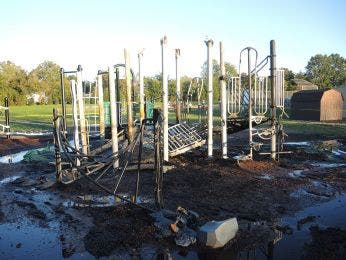 The fire was considered arson, and caused approximately $16,500 in damage to the play set and surrounding area.