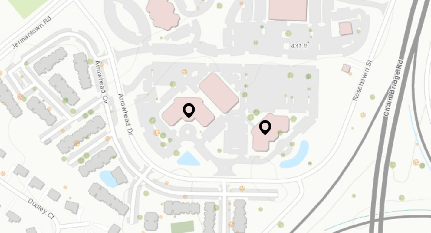 The developer seeks to demolish the three office buildings on a 12.1376-acre property located on the east and north sides of Arrowhead Drive and west of Rosehaven Street. The property is situated north and west of the I-66/Chain Bridge Road (Route 123) intersection and across Arrowhead Drive from The Elms at Oakton apartment complex.