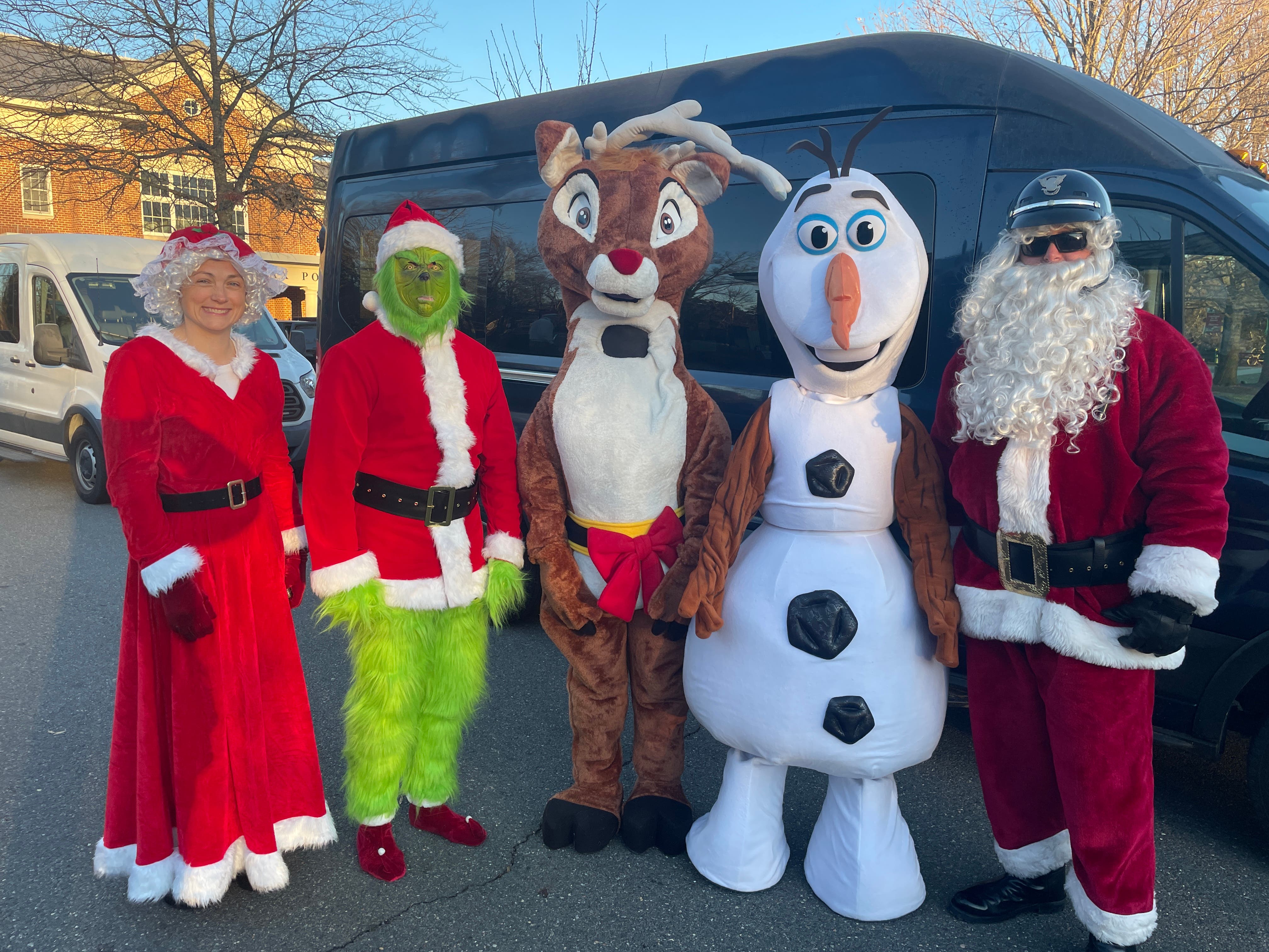 Each year, motor officers from the participating police departments escort Santa Claus throughout Fairfax County as he makes his way to thank the schools whose students and staff donated toys for children at Inova Fairfax Hospital.