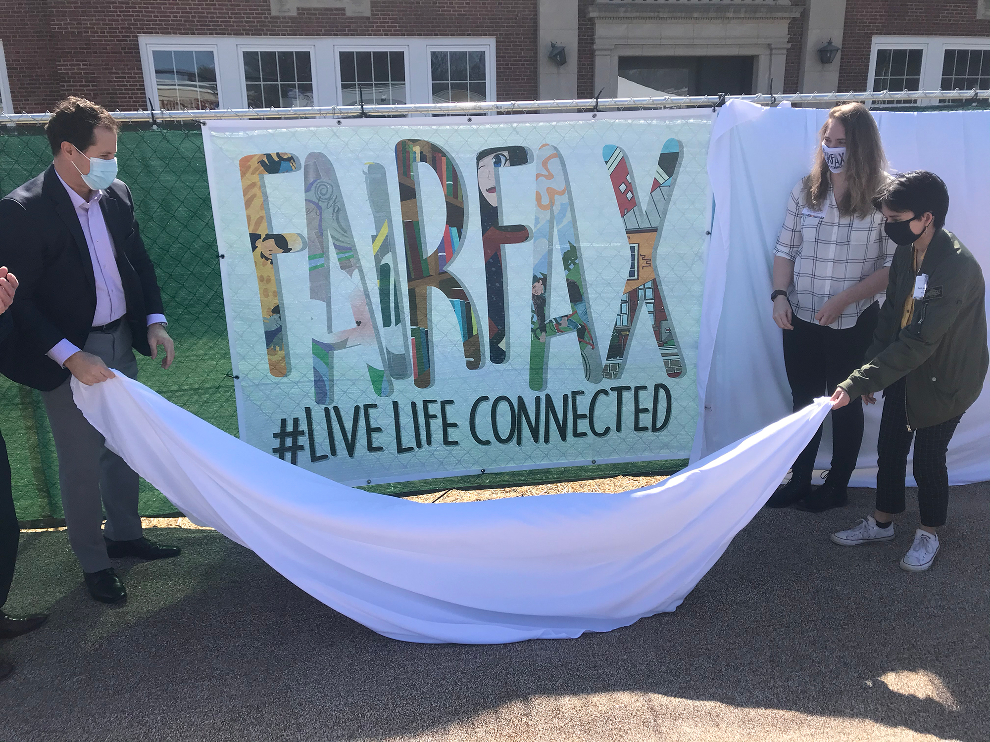 On Saturday morning, city officials and representatives of The IDI Group Companies unveiled seven murals created by students in Mrs. PJ Naber's digital arts class at Fairfax High School. The murals will be on display along Fairfax Boulevard on the construction fencing for the The Flats at Boulevard VI project.