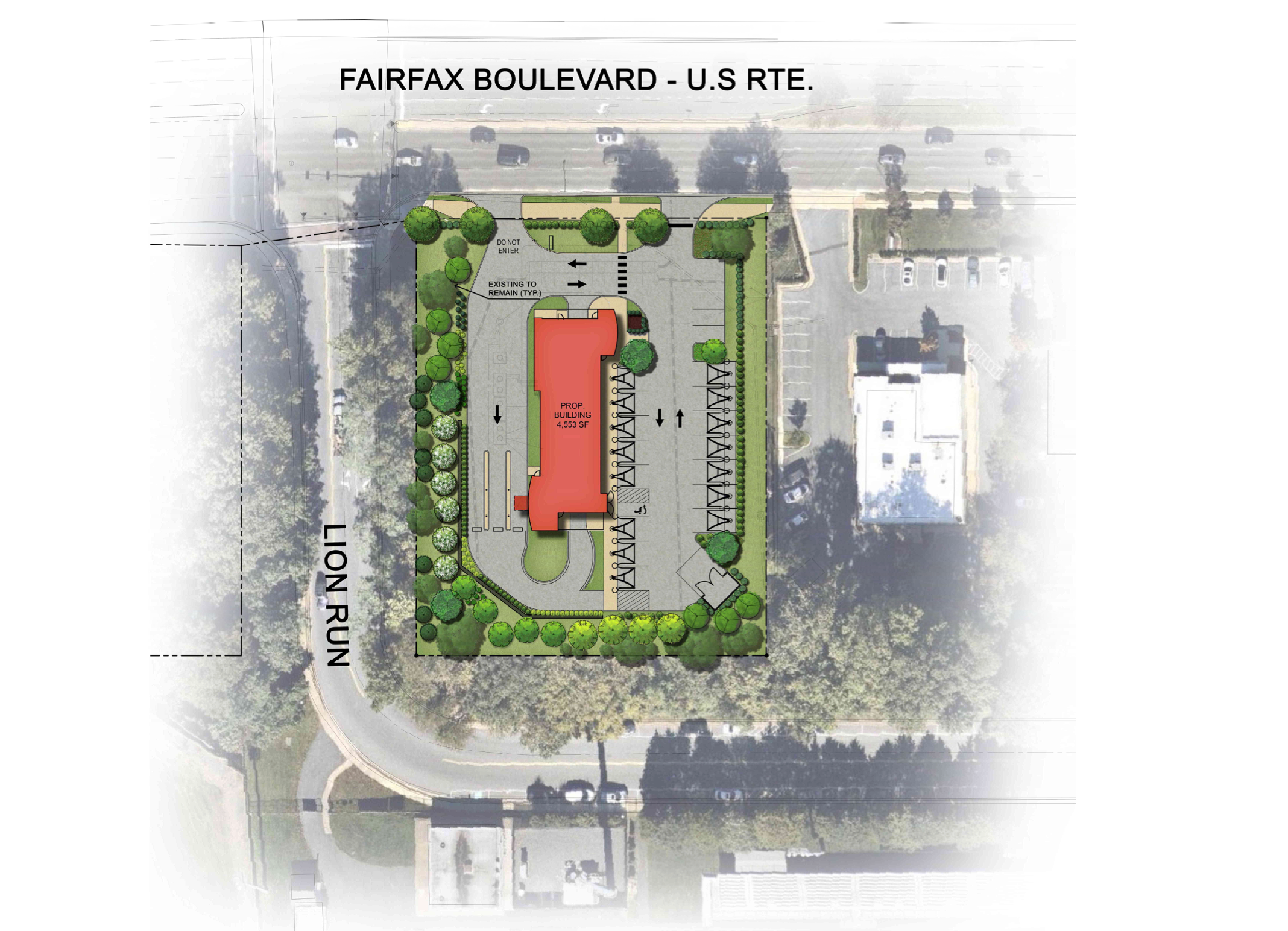 Two buildings are currently located on the property, the former Esposito's Restaurant and a vacant retail building. The 4,553-square-foot plot is situated on the corner of Fairfax Boulevard and Lion Run, which leads to Fairfax High School.
