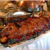 Cuban Lechon (pig) Roasted La Caja China, Yuca con Mojo, Sweet Fried Plantains, Orange Zest & Shallot Vinaigrette Salad w/ spanish almond tomatoes, Black Bean & Rice, Tres Leeches Dessert.