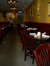 The dining room offers a slightly refined, yet also casual and comfortable atmosphere.