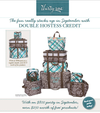 ** Valid for qualifying party orders submitted by a hostess valued at $600 or more from September 1-30, 2013, only. Qualifying party sales exclude shipping, sales tax and all Hostess Rewards. The value of Hostess Credit cannot be applied to half-price items. Half-price items and exclusives will not be doubled. For parties above $1,200, the Hostess can select three of the four Hostess Exclusive styles offered for free, selecting no more than one item per style. During this September Double Hostess Credit Special, Hostesses with qualifying parties above $1,300 will receive an extra $40 in products for every additional $100 in party sales. The four styles offered are Deluxe Beauty Bag, Room To Grow Utility Bin, Suite Success Tote and Gift Bundle. As required by our agreement with each college partner, any style personalized with a collegiate patch is not eligible for any special promotion and must be purchased at its regular price.