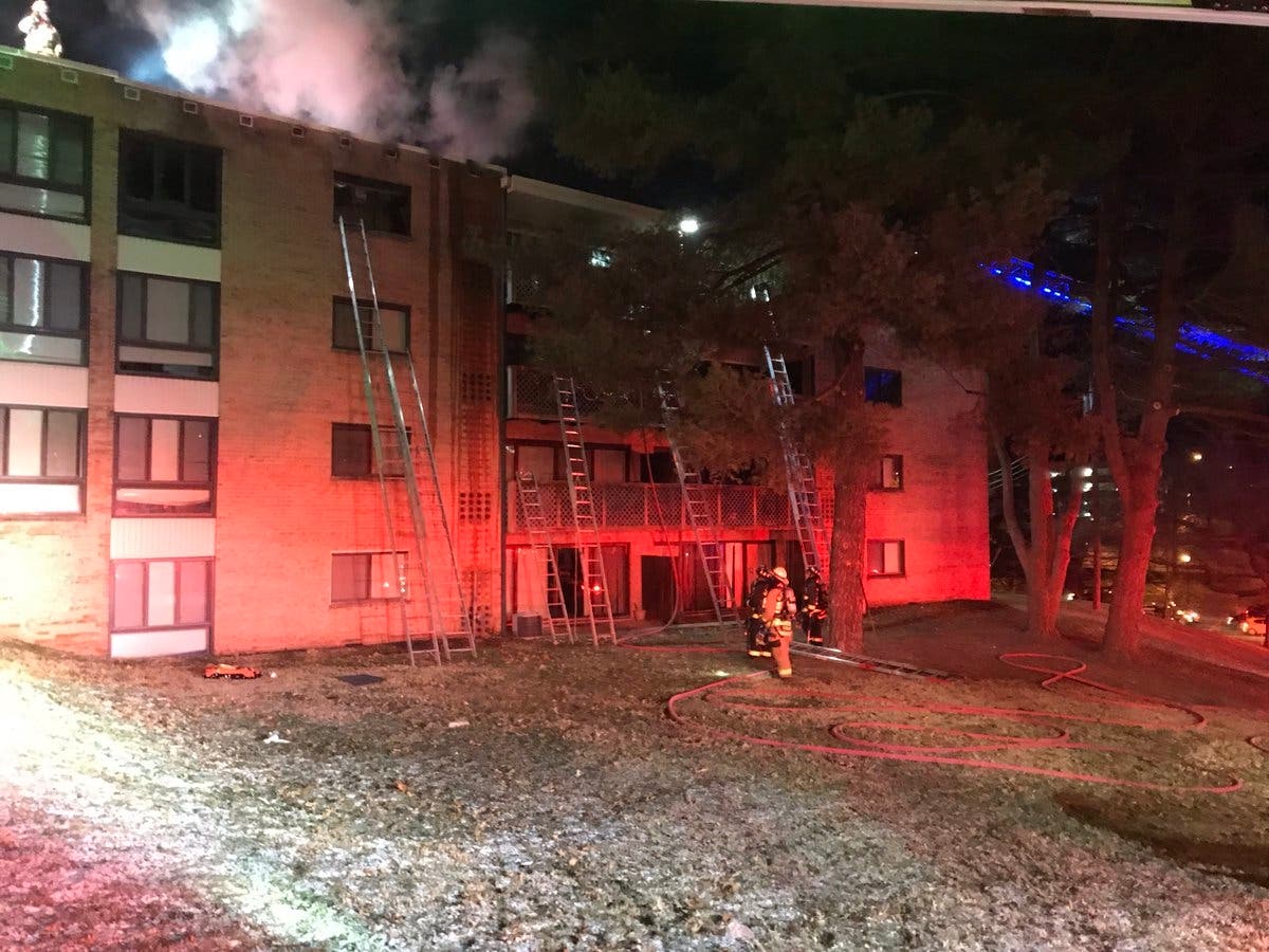 Video from earlier this morning at the three alarm apartment fire in the 3400 block of Carlin Springs Road in Bailey’s Crossroads area. Crews were just starting to initiate an attack on fire. Thanks @FairfaxCountyPD for your help this morning. #FCFRD #fairfaxcounty #news pic.twitter.com/fwLwGF3nUn