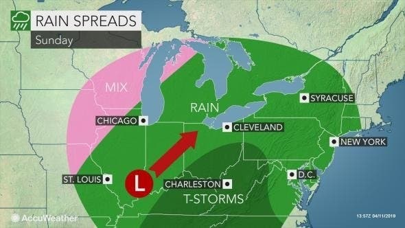 A few thunderstorms may become severe Sunday afternoon and Sunday night with damaging winds a risk. However, a tornado cannot be ruled out, the forecasters said. Some storms may also produce heavy rain that could lead to flooding Sunday night through early Monday.