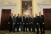 McAuliffe's five children attended the ceremony. After the exchange with McDonnell, the two walked across the hall to pose for pictures (see photo in gallery) with former governors of Virginia.