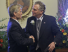 McAuliffe and his wife Dorothy, who wore a deep red dress with a matching coat and hat, hosted an open house afterward at the Executive Mansion. But first he got the keys to the mansion from his predecessor.