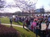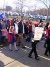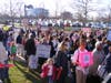 Several hundred people turned out before Tuesday's budget public hearing to support full day kindergarten and teacher raises