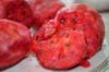 When I approached the table where the Psaras were sitting, I noticed a plate of reddish bulb-shaped food. Sophia said they are the fruit from the cactus plant that it bears after it blooms. I asked for a sample of this fruit from Mexico that she said is only in season for a short time and although they aren’t on the menu, some of their regulars ask for it when it is. Not very sweet and more like a combination of a pear and a watermelon, I can see how these would be favored in a hot and dry climate. The tiny seeds are to be eaten, much like the Kiwi seed is, but they are not as soft as Kiwi seeds. Don’t know if I would buy these in the produce section at the store, but I am sure one could find them.