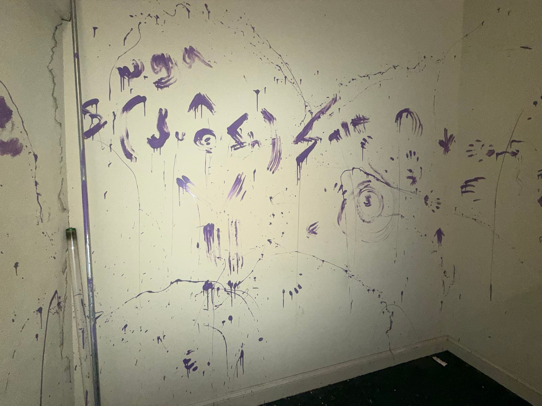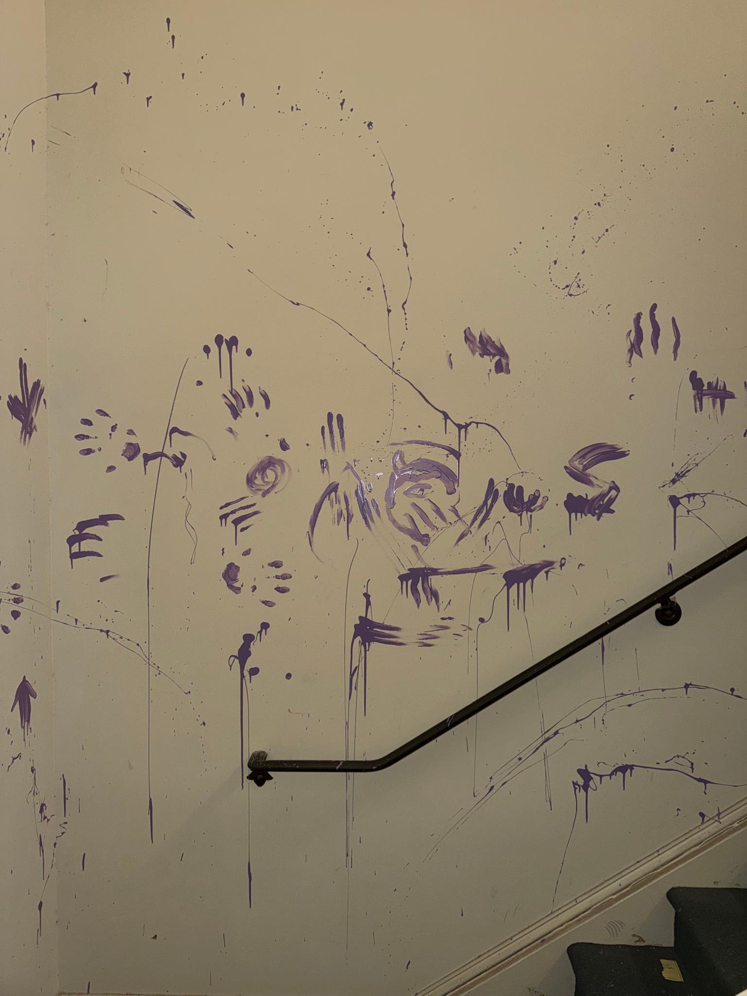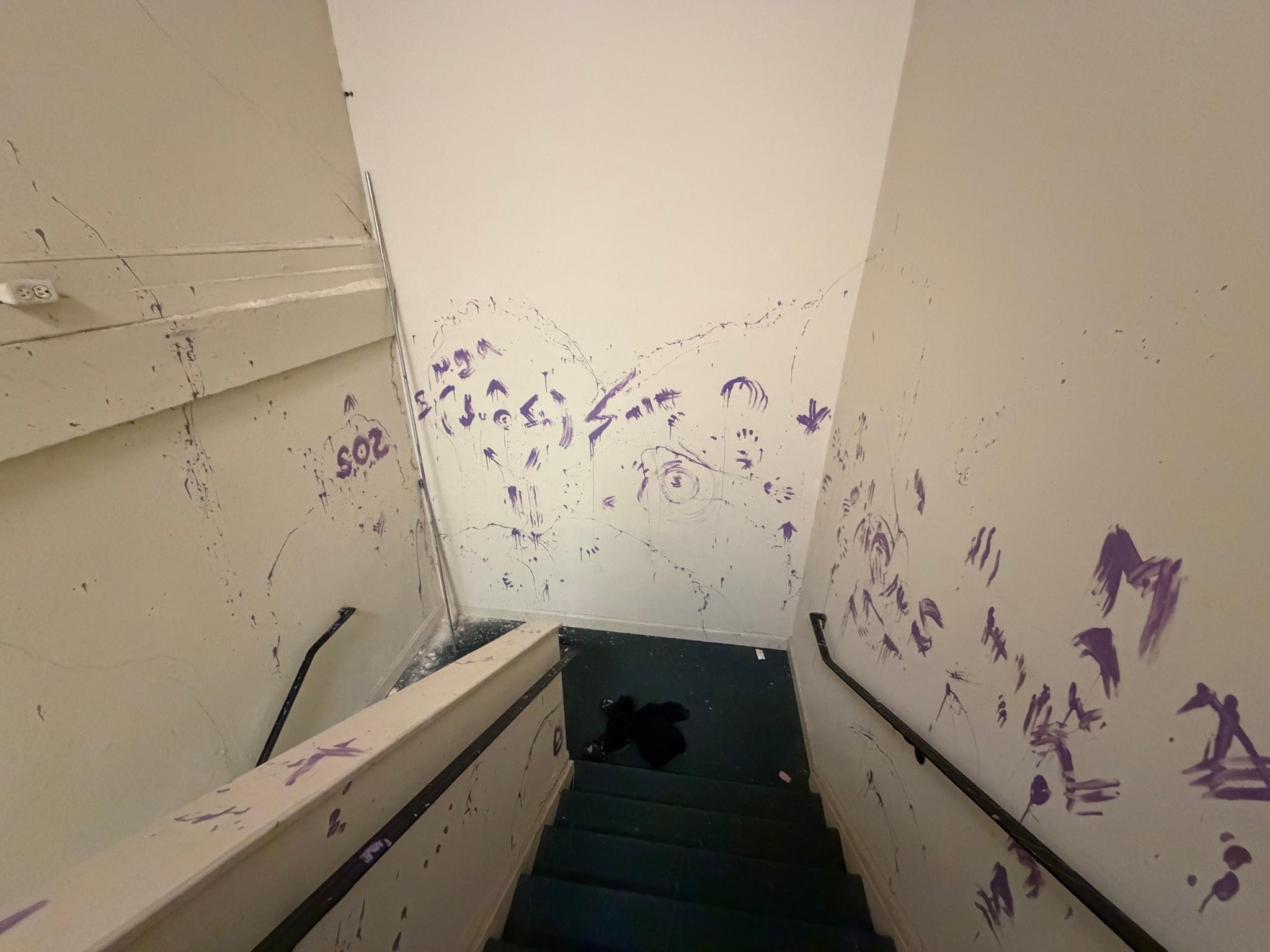 "Upon returning to the stairwell, officers discovered the vandalism," the report says. "The stairwell and carpeted flooring sustained significant damage from the paint."