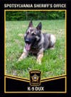 The K-9, named Dux, was taken to an emergency veterinary hospital, and its condition is unknown.