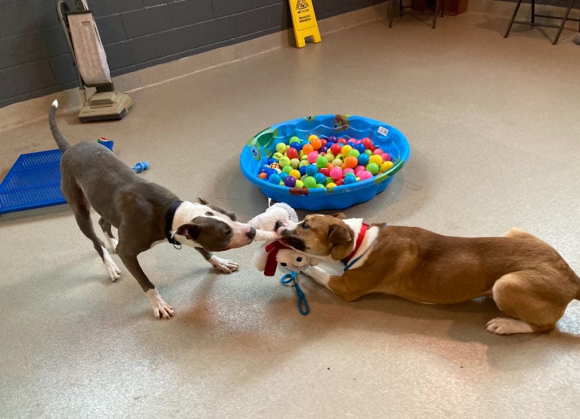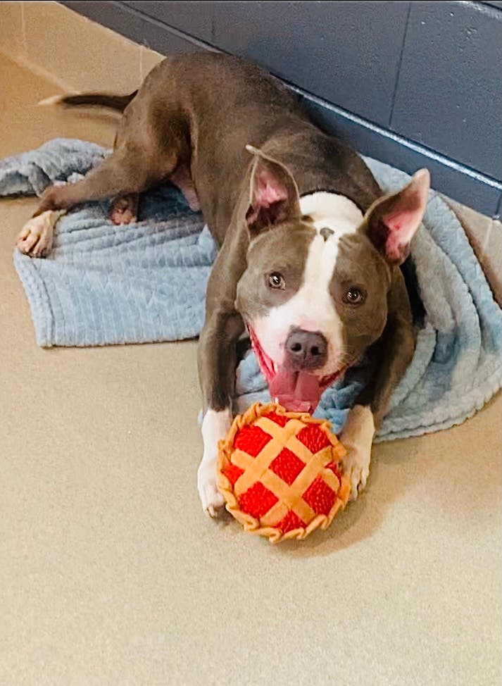 "Spencer can only be described as a happy, playful goofball," the Fredericksburg SPCA said. "He is amazing with other dogs, so if you are looking to add to your four-legged fam, Spencer would love to meet some friends!"