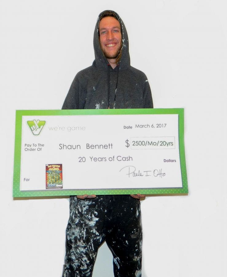 His winner was a "20 Years of Cash" top prize ticket. Bennett could've taken a lump sum of $492,919 before taxes but chose the option of $2,500 per month for 20 years.