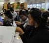 Gathered around tables at Bryant Alternative High School's library, pupils sit with teachers, discussing how they can relate to a vignette in the book the "House on Mango Street" about hair.