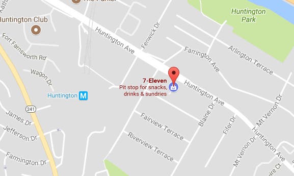 Around 3:15 a.m., a man entered the 7-Eleven at 2305 Huntington Avenue, pointed a gun at the victims and demanded money. The victims handed over money, and the unknown suspect fled in a silver car.