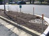 The signs on the corner will signal the second method of filtration. Called a bioretention garden, it’s made up of permeable material in an open depression with a selection of trees, shrubs, grasses, and flowers. It functions like the box described above, but in a different size and with a different look. At the moment, the area doesn’t look finished because the plants aren’t yet installed. They will be in a few weeks.