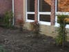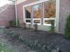 The new garden contains stately arborvitae on each side and Nandina domestica in the center. Once established (like the plants on the other side of the entrance) Nandina will have lovely red berries this time of year. The border of liriope has been in the garden and survived well over the years. Late in the summer, it will have some pretty spikes of blue flowers. There are two varieties of spirea which should give us delicate sprays of pink blossoms in the spring.